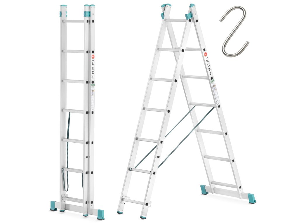Dvojdielny hliníkový rebrík 2x7, pracovná výška 4,20 m