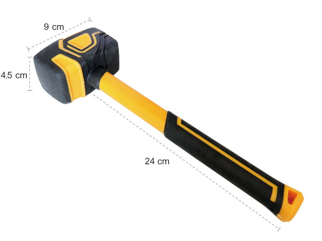 Hlavica je vyrobená z čierno-žltej gumy, ktorá je dostatočne mäkká, aby nepoškodila povrch, ale dostatočne pevná, aby poskytla potrebnú silu pri údere. Gumená palička by nemala chýbať v dielni žiadneho kutila.