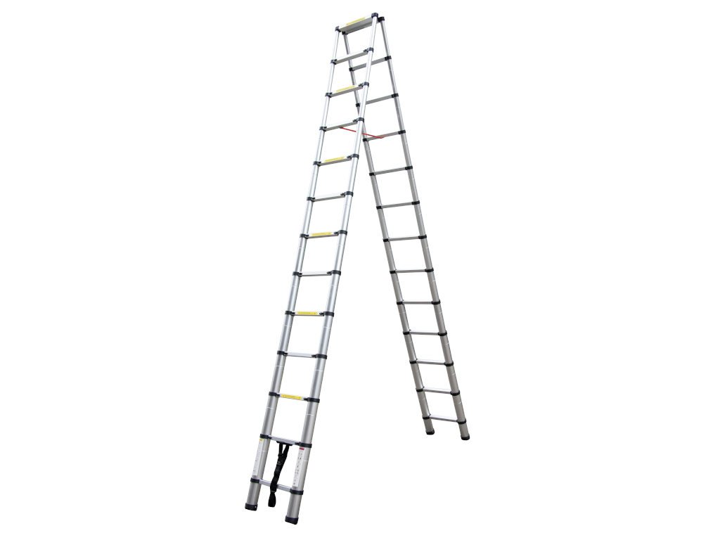 Teleskopický rebrík s 2x13 stupňami je univerzálnym riešením pre dom, chatu, sklad alebo obchod. Moderná konštrukcia zložená z hliníkových rúrok rôznych priemerov umožňuje zložiť rebrík do neuveriteľne malých rozmerov (veľkosť balenia 88x51x21 cm). Počas niekoľkých okamihov z neho vytvoríte štafle s dĺžkou strany až 3,8 m. Vyniká predovšetkým svojou flexibilitou a univerzálnosťou.