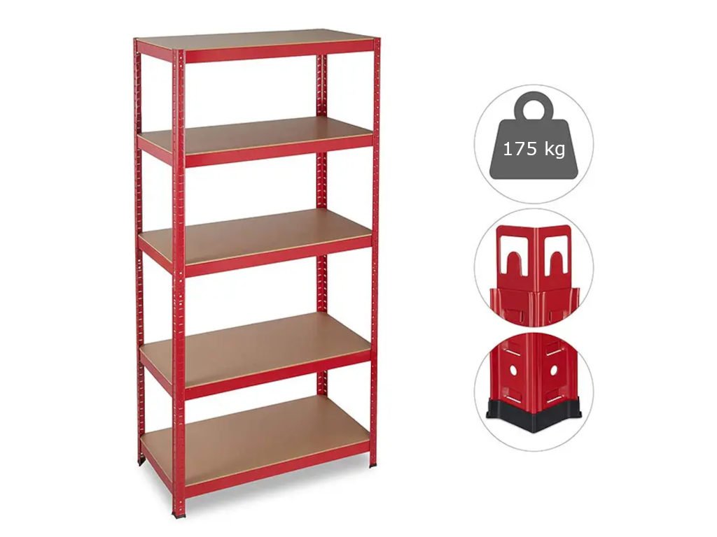 MEGA HIT: Regál 1800x900x400 mm, lakovaný 5-policový, nosnosť 875 kg - ČERVENÝ