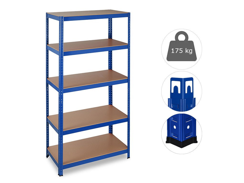 MEGA HIT: Regál 180x90x40 cm lakovaný 5-policový, nosnosť 875 kg - MODRÝ