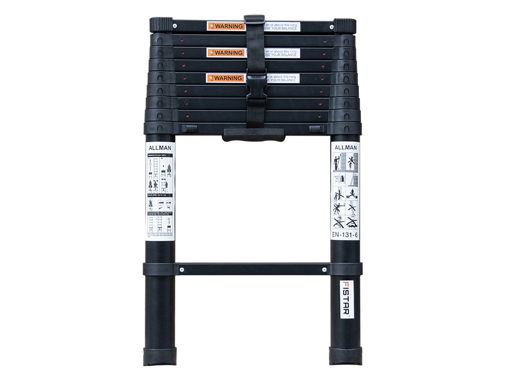 Zložený teleskopický rebrík je uložený v prenosnej taške. Vďaka tomu sa ľahko prenáša, skladuje a nepráší sa naň. Vyniká nízkou hmotnosťou a v zloženom stave sa ľahko zmestí do auta. Zároveň je veľmi odolný a bezpečný. Vydrží zaťaženie až 150 kg.